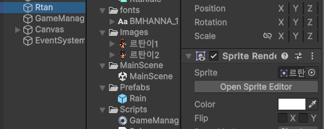 * 이때, 각 변수는 Float과 spriteRenderer 함수로 선언