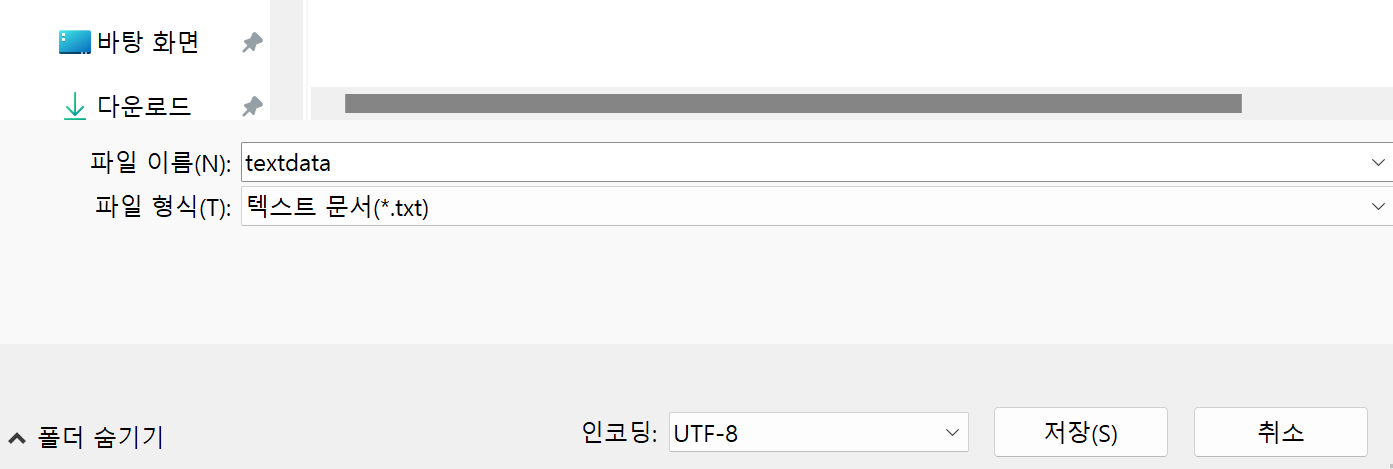 먼저 유니티로 파싱했을 때 한글깨짐 이슈를 방지하기 위해 저장한 엑셀 파일을 메모장에 열고 인코딩을 UTF-8로 저장한다.